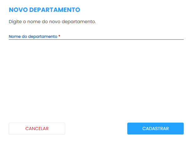 Clique em cadastrar para incluir um novo departamento.