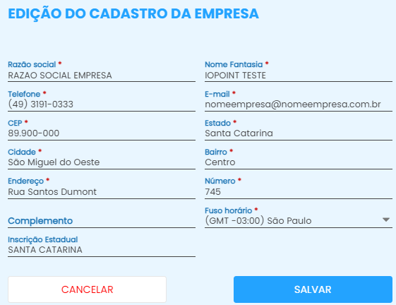 - Clicando no ícone de editar, vai abrir a ficha cadastral da sua empresa, podendo alterar as informações a qualquer momento.