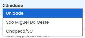 7. Caso existam feriados vinculados a unidades específicas, por meio desta coluna será possível visualizar o nome de cada unidade e realizar o filtro selecionando a desejada.
