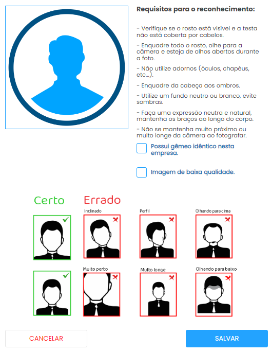 cadastre a foto do colaborador para o reconhecimento facial, seguindo os requisitos descritos.