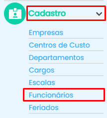 Para acessar os funcionários clique em cadastro >> funcionários, no canto esquerdo da sua tela.