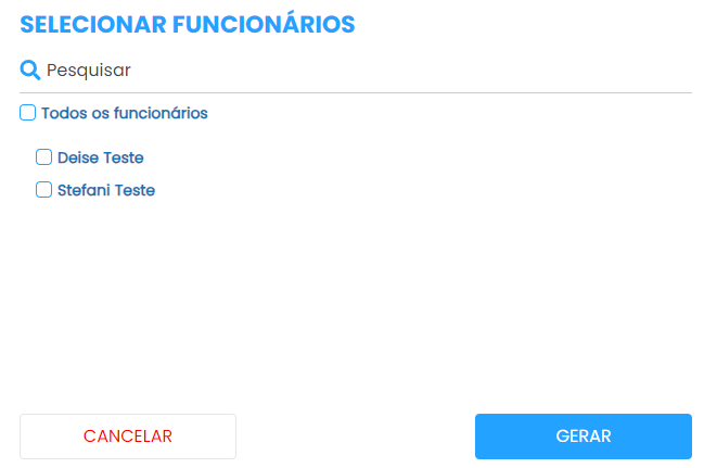 com o uso do aplicativo e seus registros de ponto. Para baixar, clique em baixar documento, selecione os funcionários e clique em gerar.