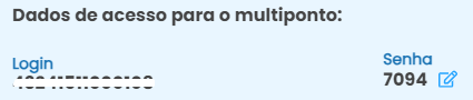 2. Em dados de acesso ao multiponto está disponível o login e a senha de acesso a modalidade de registro multiponto. Para trocar a senha clique no ícone de edição