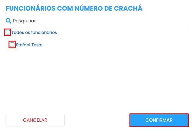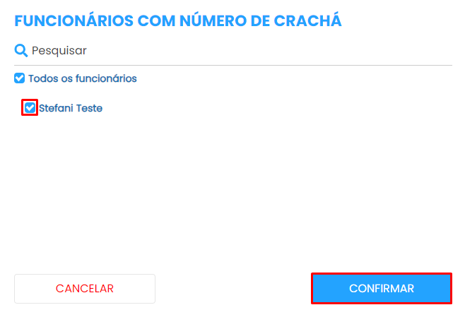 7.A Para definir o numero do crachá como senha do aplicativo, clique em definir senha, selecione os colaboradores desejados e confirme.