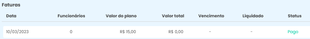 7.AData: Data do envio do boleto;7.BFuncionários: Quantidade de funcionários no plano;7.CValor do plano: Valor pago por funcionário;7.DValor total: Valor total da fatura;7.EVencimento: Data que venceu o boleto, caso exista algum vencido;