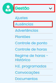 Para acessar as ausências, clique em gestão >> ausências, no canto esquerdo da sua tela.