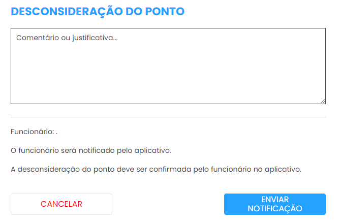 4º ícone : Na lixeira o gestor pode estar fazendo uma solicitação de desconsideração de ponto para o funcionário, apenas informando uma justificativa e enviando, o funcionário vai receber uma notificação no aplicativo onde pode estar aceitando ou recusando;