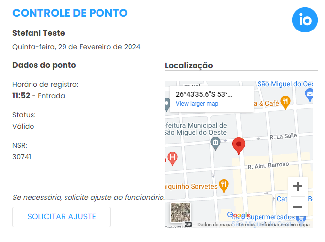 Ponto registrado no Ponto Web;