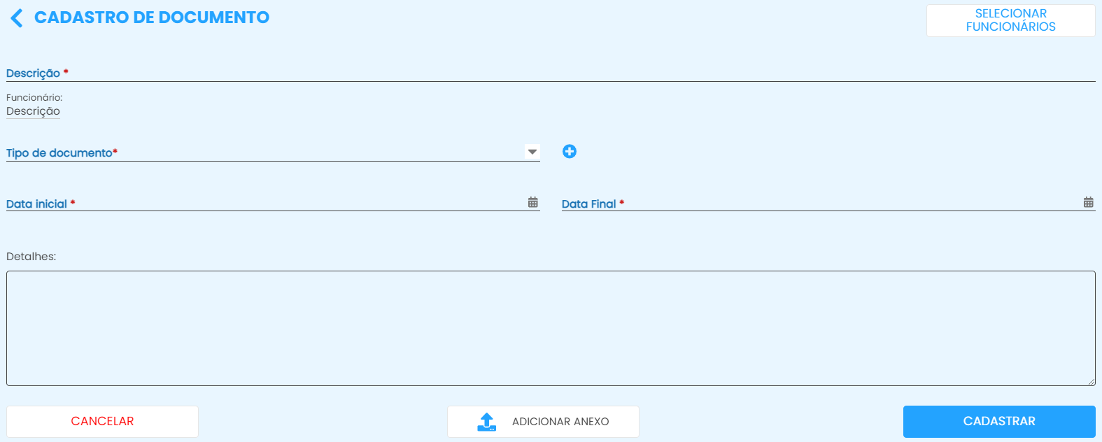 Adicionar anexos: Clique nesse campo para adicionar um anexo ao documento;