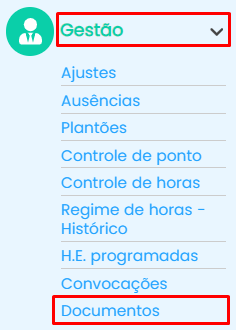 Para acessar os documentos, clique em gestão >> documentos, no canto esquerdo da tela.