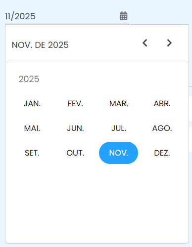 - O mês exibido está de acordo com as informações apresentadas em tela. Para visualizar um período diferente, clique sobre a data e selecione o mês desejado.