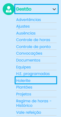 Para acessar os Holerites, clique em gestão >>Holerites, no canto esquerdo da tela.