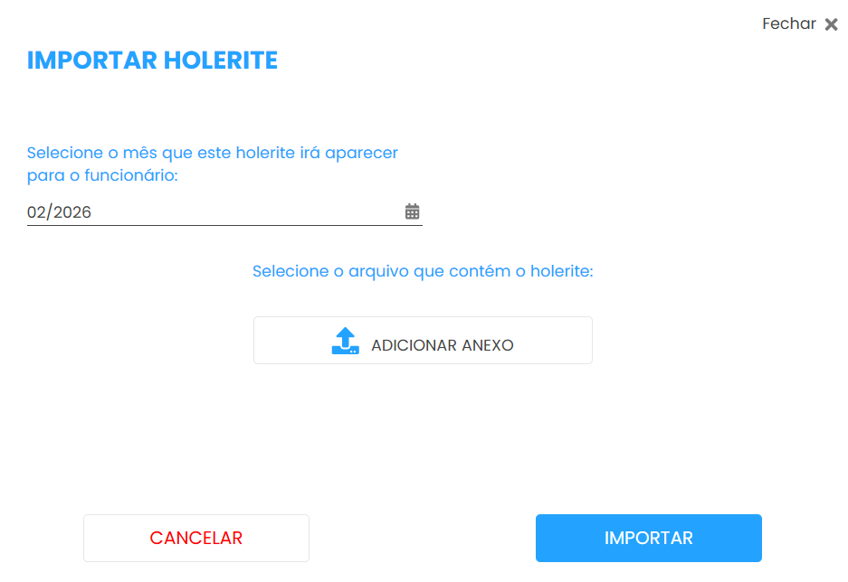 Em seguida, selecione a competência do holerite e clique em Adicionar anexo para selecionar o documento. Ao clicar em Importar, os detalhes serão exibidos na tela principal da funcionalidade, onde será possível acompanhar as informações e, em seguida, encaminhá-las ao aplicativo.
