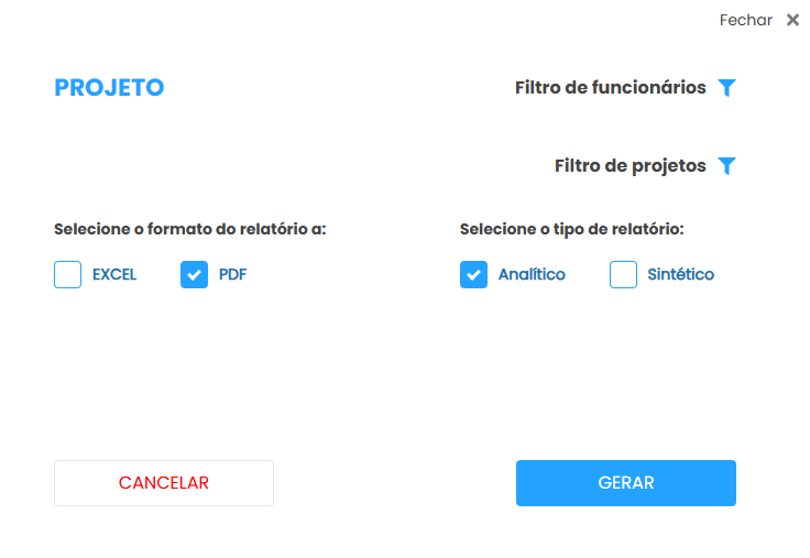 Observação: Este módulo está disponível apenas para alguns clientes e é habilitado mediante solicitação, quando houver a necessidade de controle dos projetos na empresa.