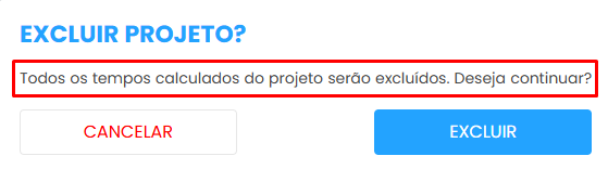 Atenção: Ao excluir um projeto após desvincular todos os funcionários, todo o histórico relacionado a esse cadastro será permanentemente apagado.