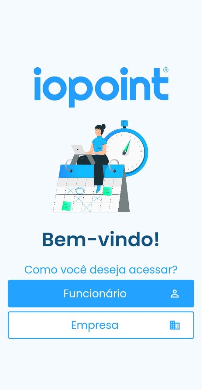 Para baixar o aplicativo da Iopoint, procure por Iopoint - Ponto Inteligente na Play Store ou App Store.