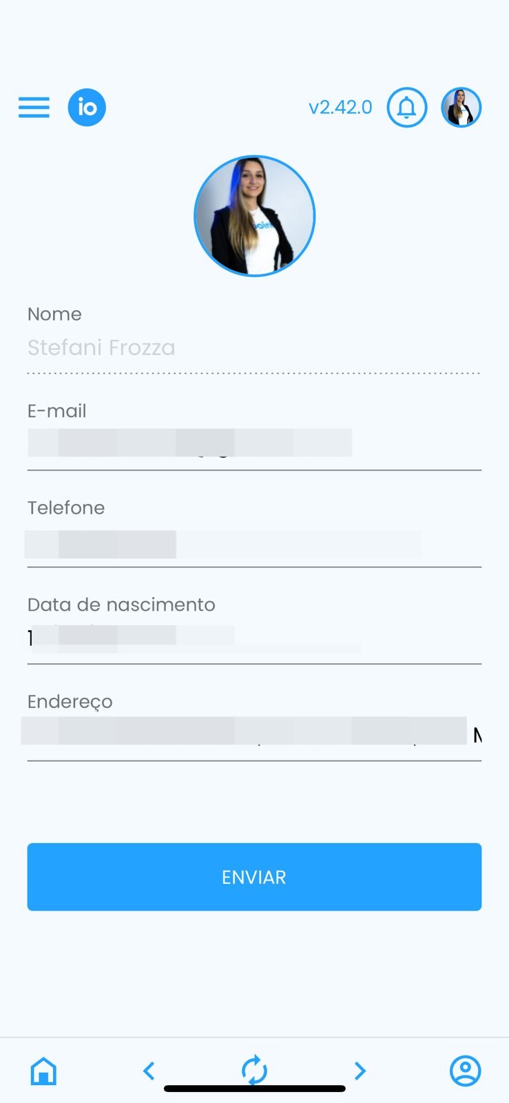 Para editar suas informações pessoais, como e-mail, telefone, data de nascimento e endereço, selecione o ícone localizado no canto superior direito da tela ícone de perfil .jpeg .