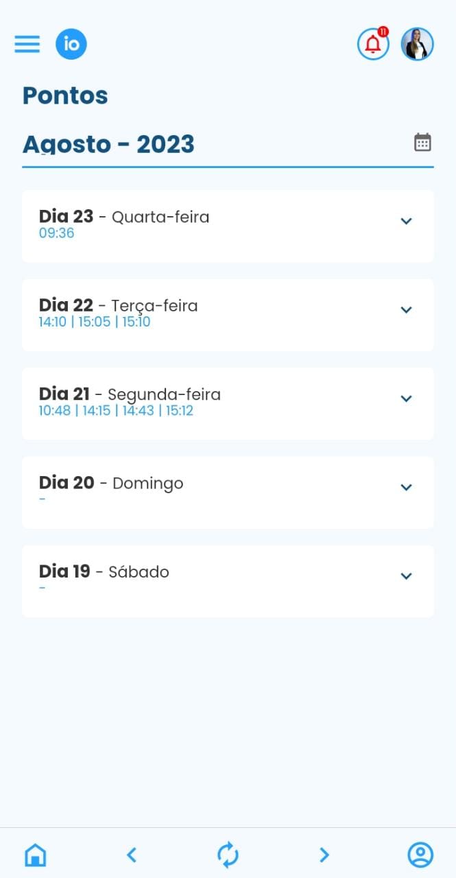 5. Nome da empresa. Se o funcionário estiver cadastrando em mais que uma empresa, clicando na seta  WhatsApp Image 2023-08-23 at 10.58.07.jpeg presente no final da linha, o mesmo consegue visualizar as empresas que está vinculado. Para fazer a troca deve apenas selecionar a desejada;