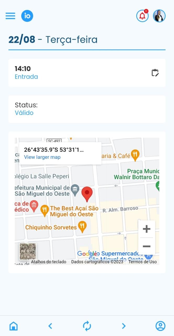 3. Ao selecionar esse ícone WhatsApp Image 2023-08-23 at 10.54.05.jpeg será mostrado a sua localização atual. Para atualizar, clique no ícone de localização  WhatsApp Image 2023-08-23 at 10.54.26.jpeg a baixo do mapa.
