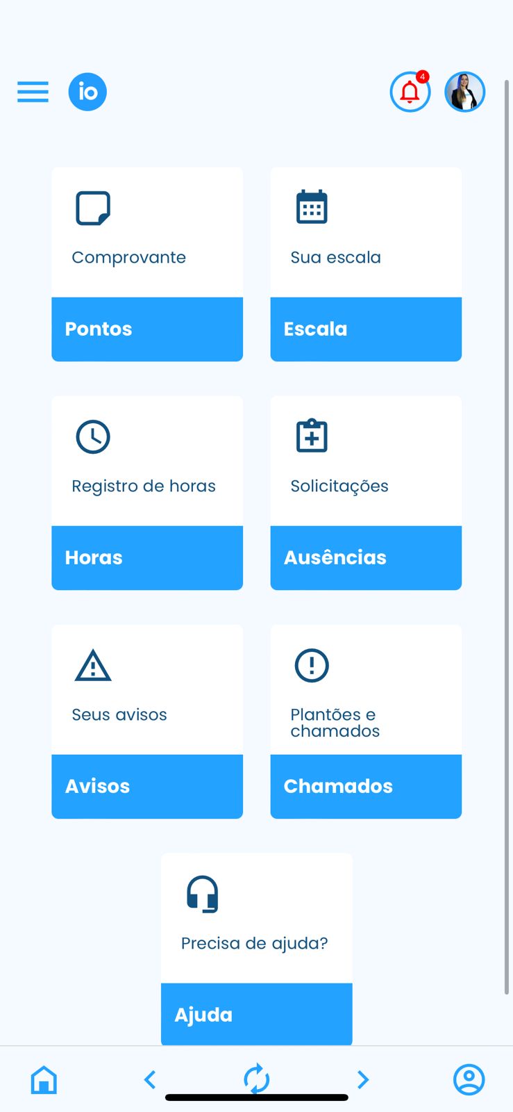 Chamados: Nessa opção você será direcionado para as notificações, onde poderá visualizar os chamados de plantões sobreaviso e prontidão;