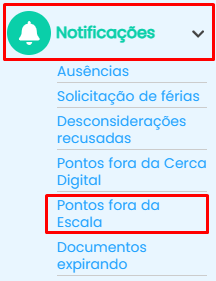 Para acessar os pontos fora da escala clique em Notificações >> Pontos fora da escala, canto esquerdo da sua tela;